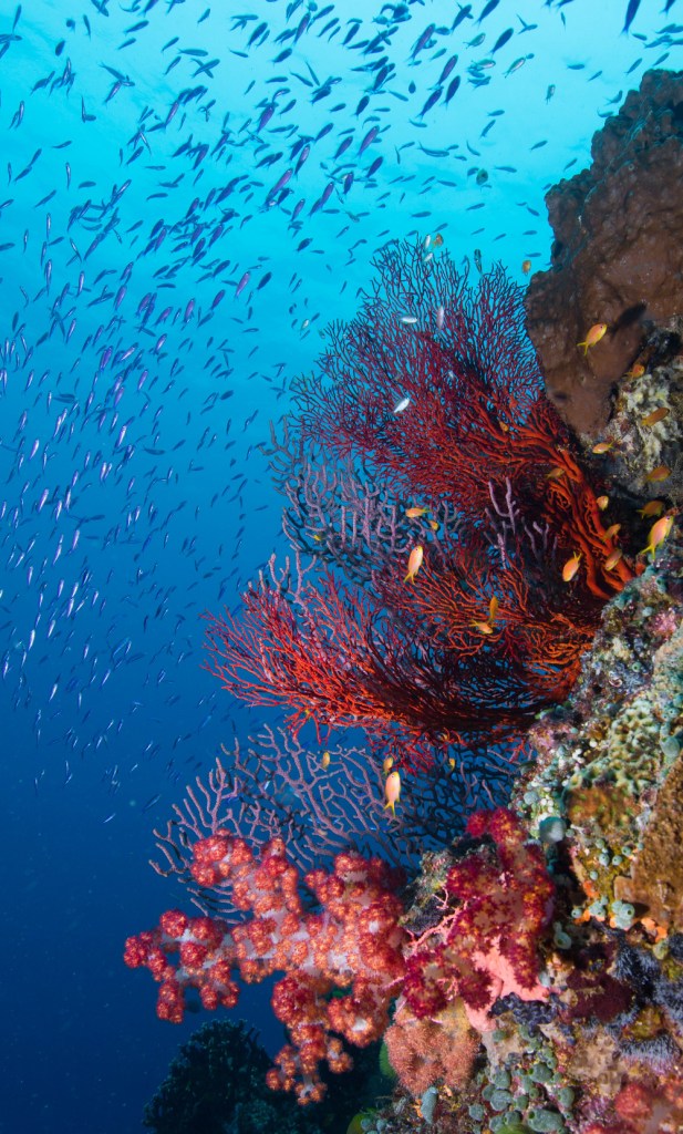 Mike Ball Dive Expeditions, have specialised in shark diving for many decades, offering passive shark attraction and shark-feeding dives in the Coral Sea Marine Park, at Osprey Reef’s ‘North Horn’ dive site. Up to 60 sharks attend their feeds, where divers can safely view the spectacular ‘feeding frenzy’ for 2-3 minutes within a distance of approximately 6-7 metres.