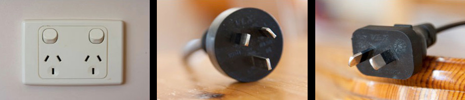 Electrical appliances : Australia’s mains electricity operates at 240V with a 50Hz AC signal. A three-bladed plug is used for most devices, however some double-insulated devices don’t have the bottom, earth blade. All powerpoints have three holes, and almost always have a switch for each socket.